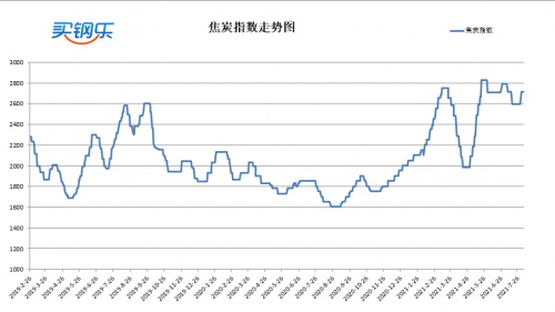 买钢乐焦炭指数收于2717元/吨,较上周上涨120元/吨,涨幅4.62%。