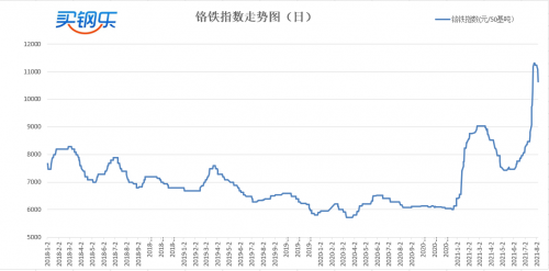铬铁前期涨幅过快,钢铁大幅限产和不锈钢大幅回落,促使铬铁价格回落。