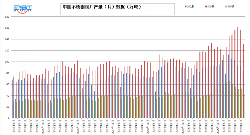 7月200系约92万吨、300系约157万吨、400系约52万吨